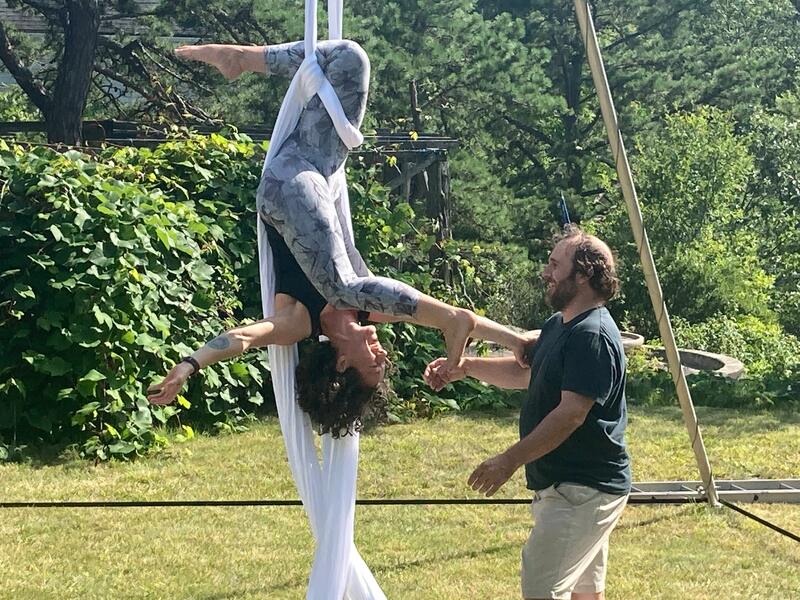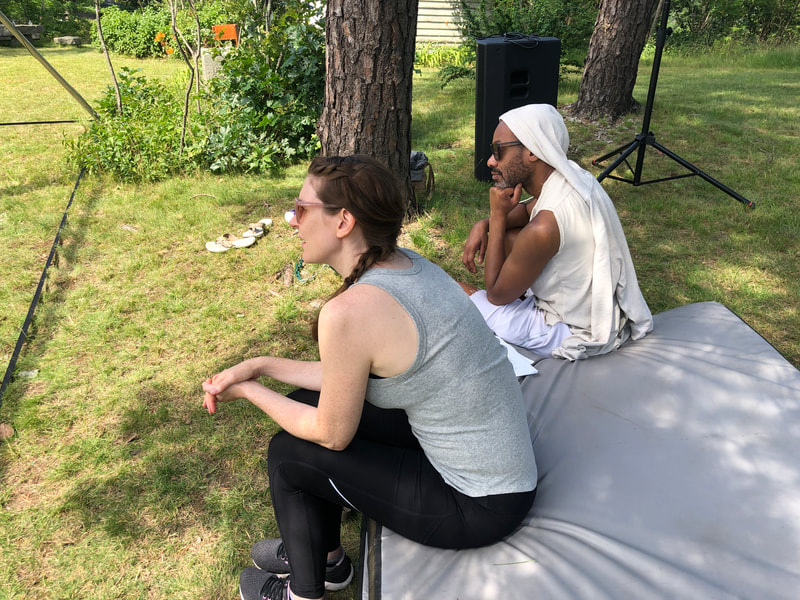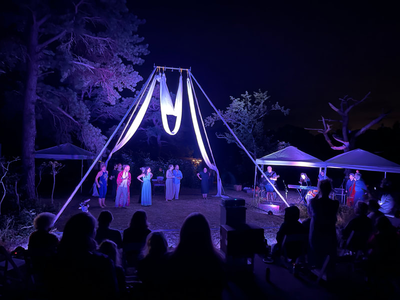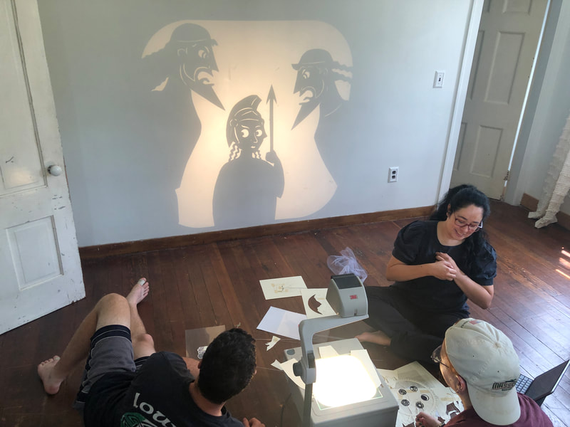 From April to August 2021, the Medusa Reclaimed Team completed 3 residencies at Manship Artists Residency + Studios (MARS) in Lanesville, MA. During the time we hosted more than 20 cast & crew to explore and develop various aspects of the production including script work, table reads, aerial dance, shadow puppetry, and animation culminating in a special "proof of concept" performance on the property.
